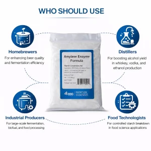 This enzyme is widely used in beer brewing, whiskey production, biofuel processing, and food-grade fermentation systems. Its high activity level ensures faster conversion rates, reduced processing time, and improved final product clarity. Whether you are a professional distiller or a homebrewing enthusiast, this enzyme delivers consistent, high-quality results.