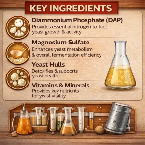 This advanced nutrient blend supports yeast growth, improves fermentation speed, and enhances alcohol yield. It is widely used by both beginners and experienced brewers who want reliable fermentation without common issues like stuck fermentation or off-flavors.
